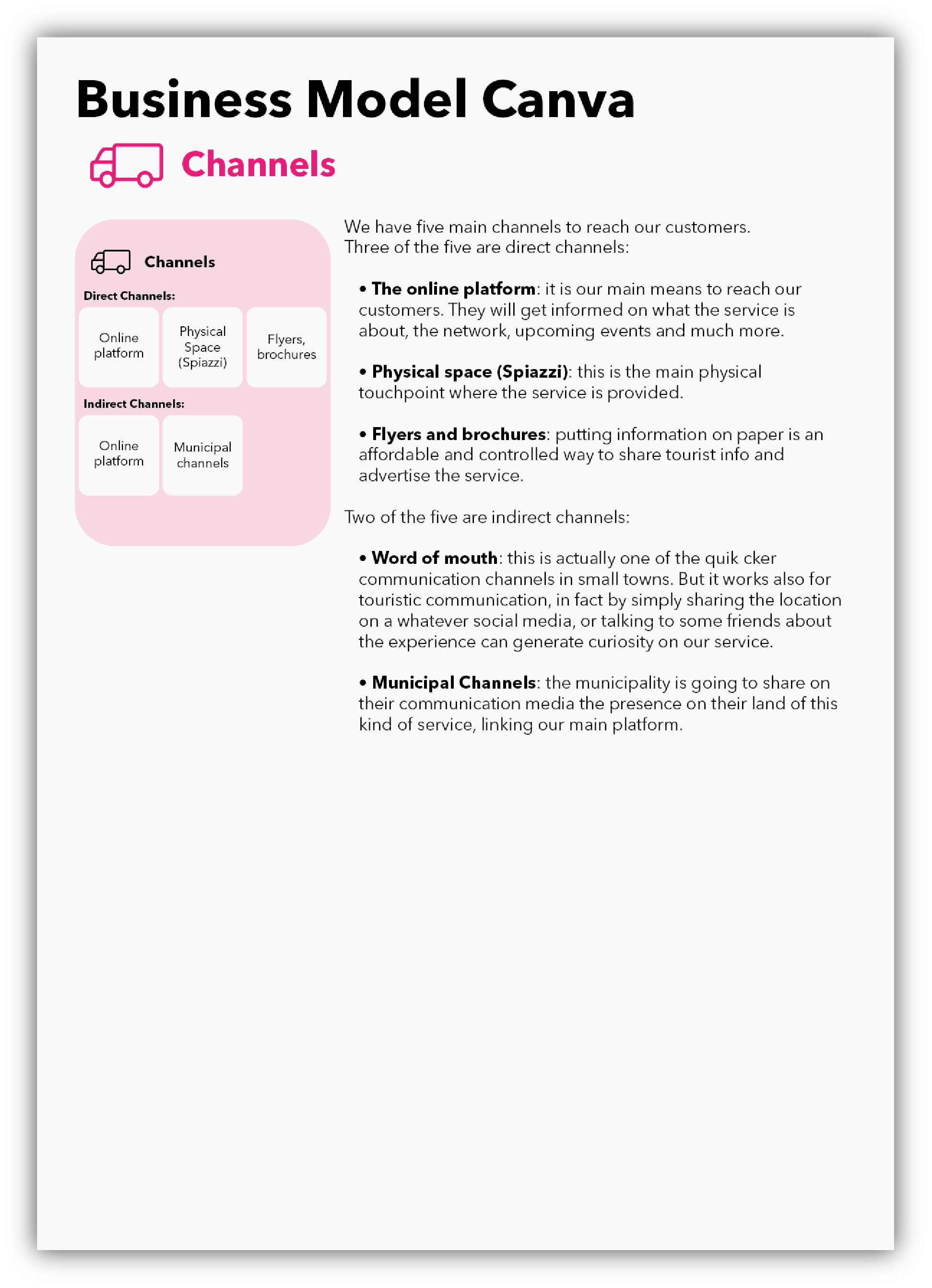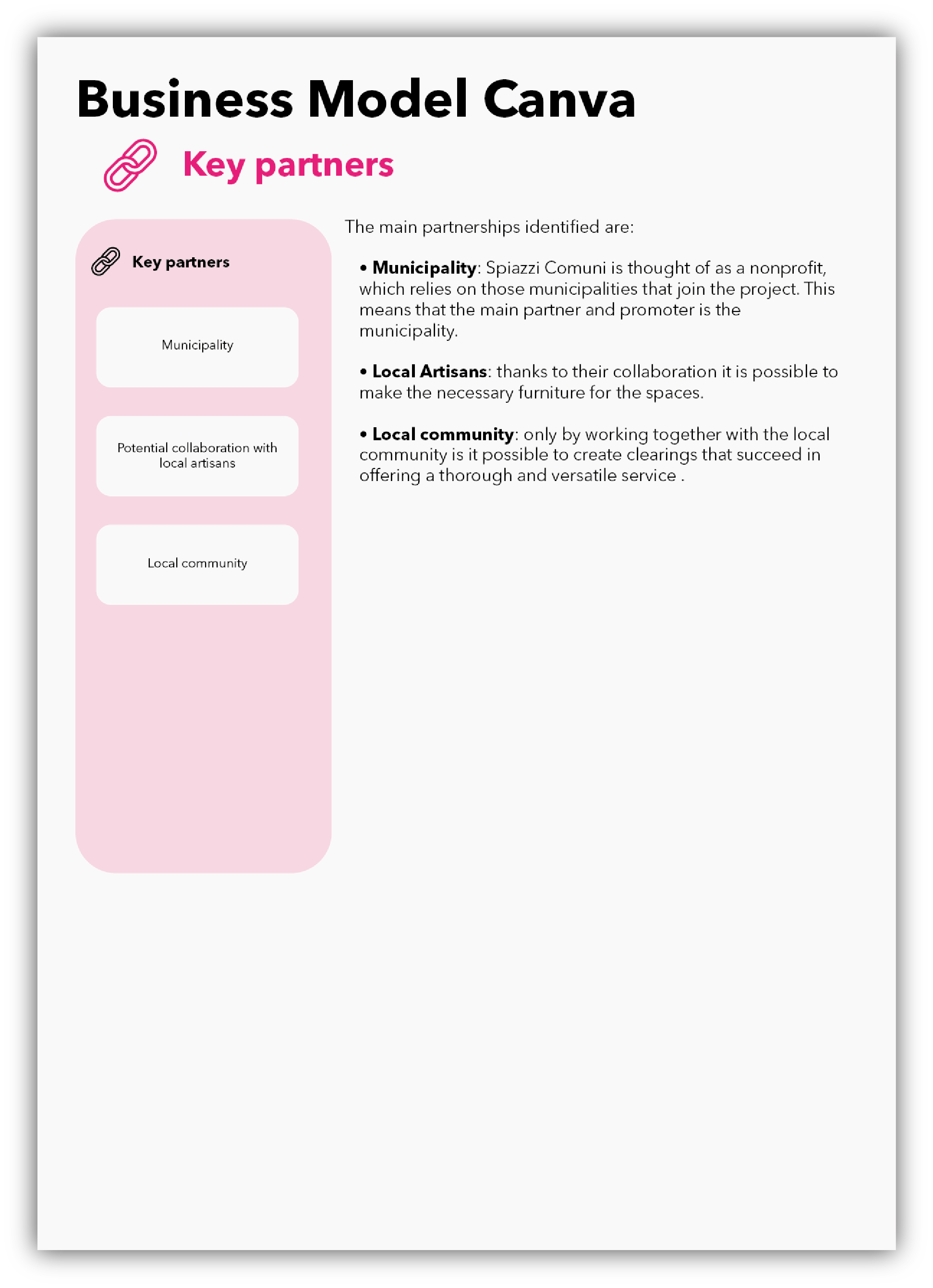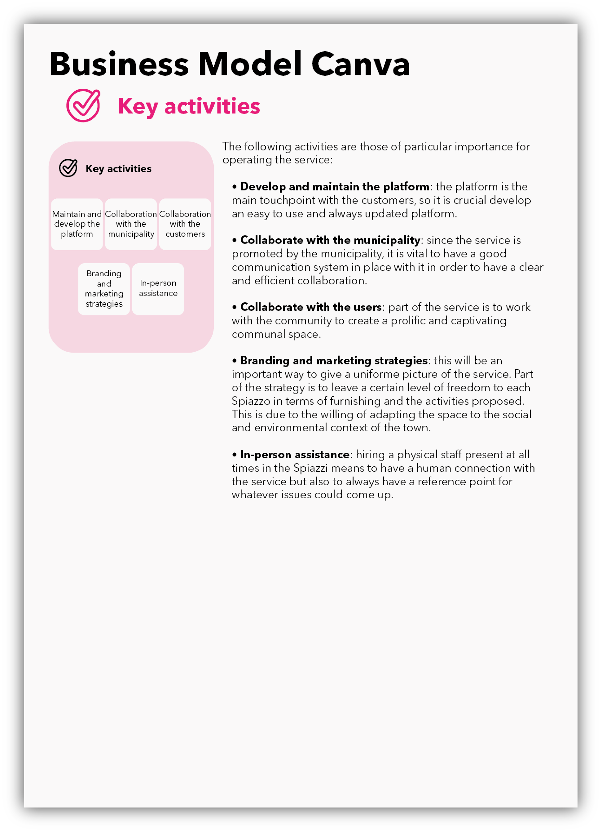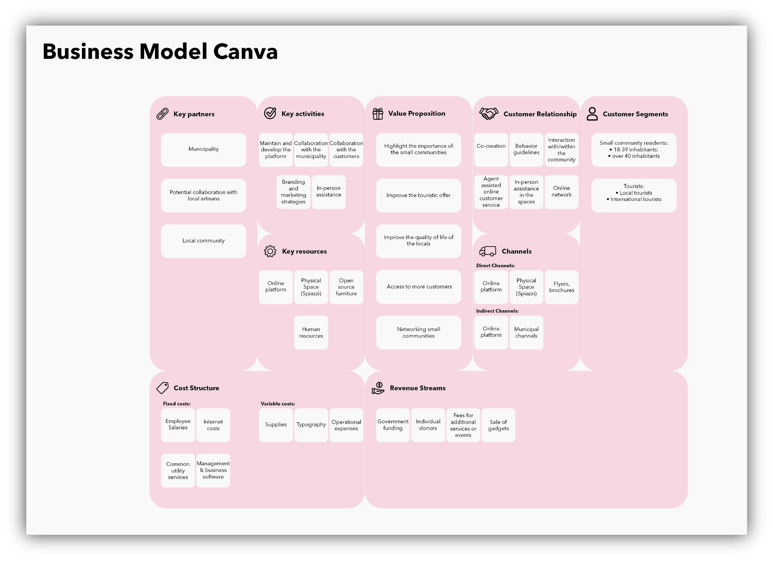 In the Business Model Canva identified the various actors that make up the service, the core activities, values, costs and revenues.
