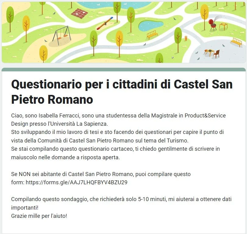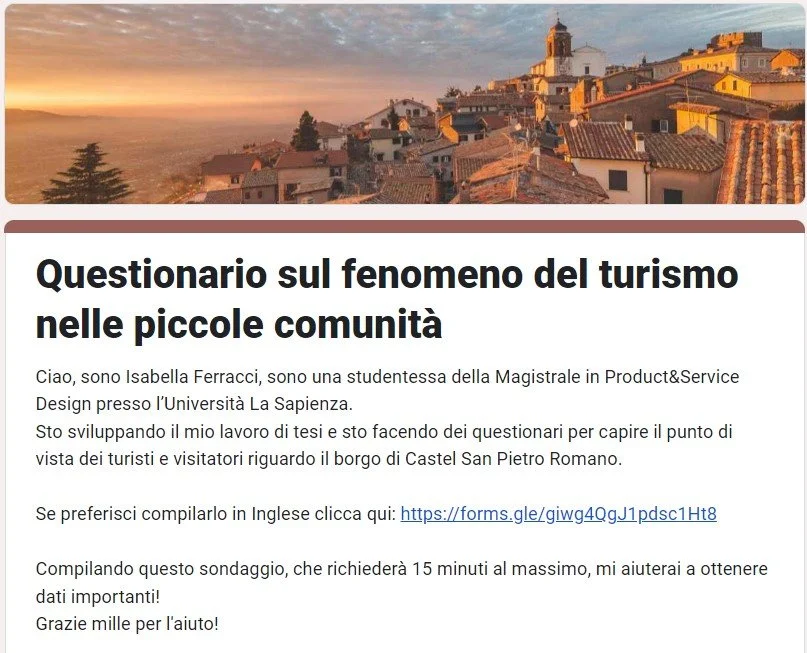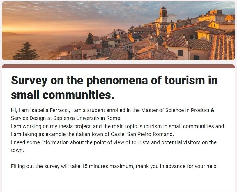 I am part of a small community myself, I live in a small Italian “borgo” (small town) called Casel San Pietro Romano, located in the roman countryside where everyday I see and experience the limits and potentials of the area. Hence, I set out to think about how my experience as a designer and resident to tackle real-life critical issues in the area using a Service Design approach
