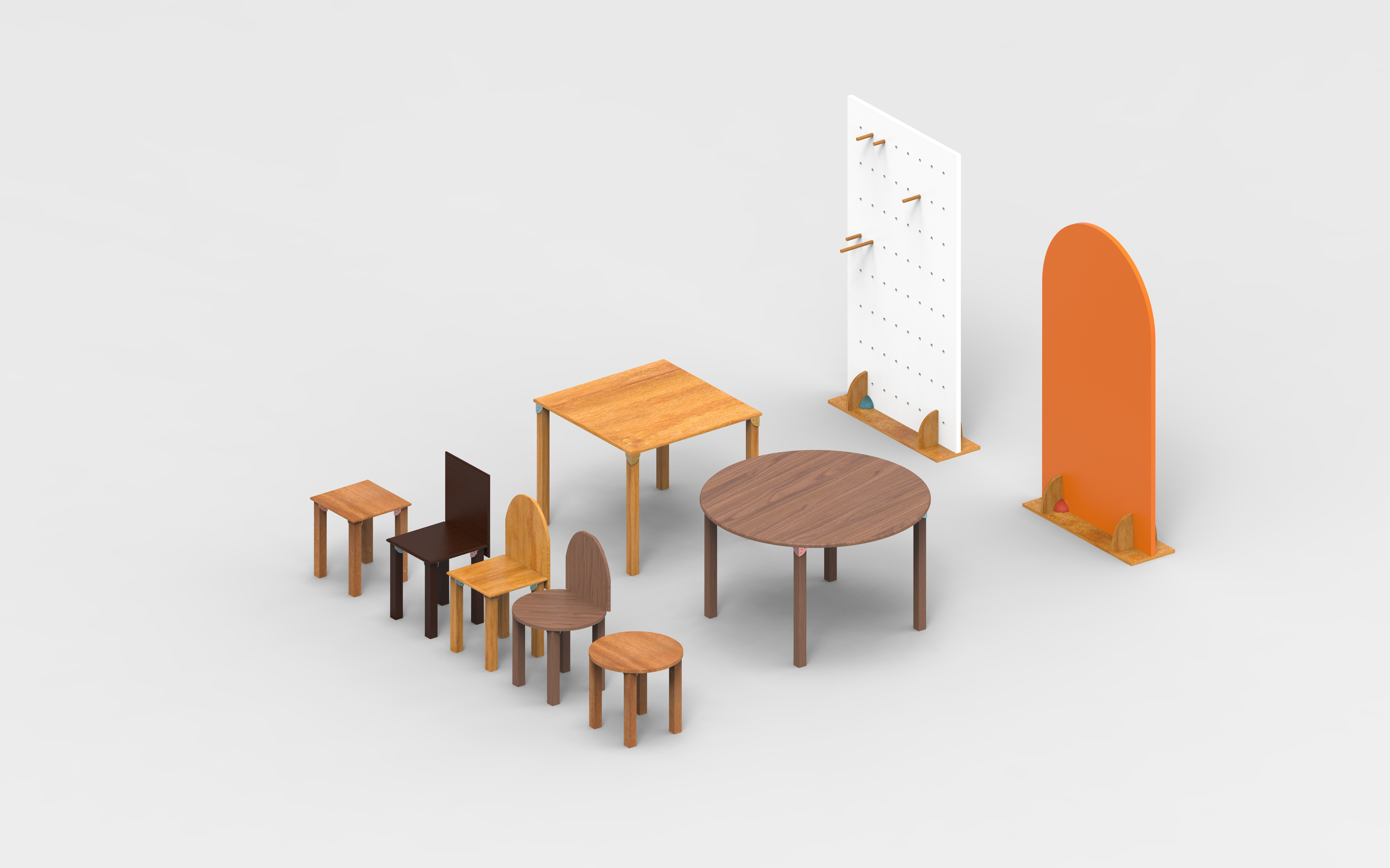 With these two elements is possible to create six main layouts: Recreational, Work and Study, Workshop, Forum, Presentation, and Exhibition.