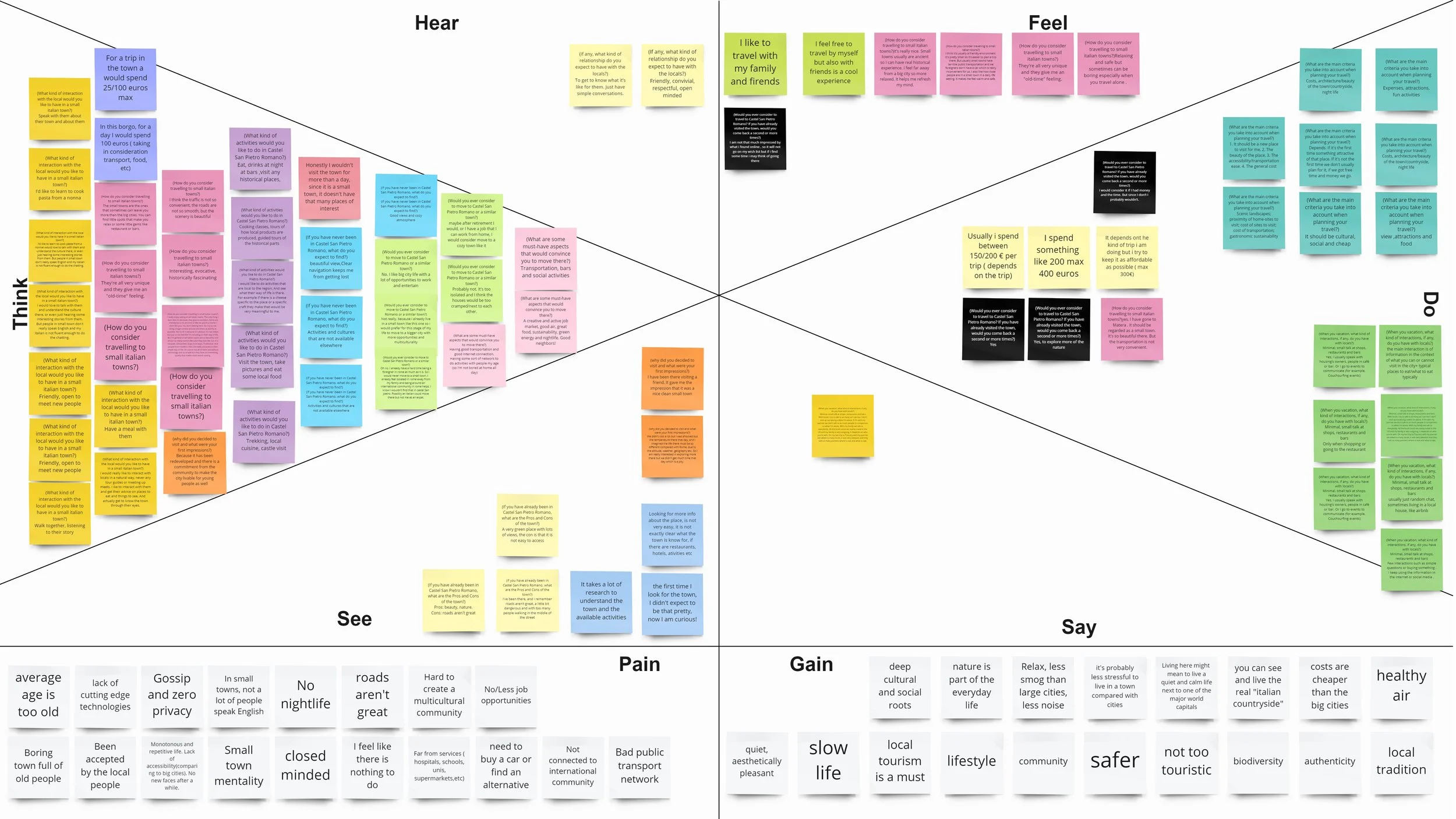 After having collected all the data from the interviews, the most important information have been translated into three Empathy Paths: Inhabitants, Local Tourists and International Tourists.
